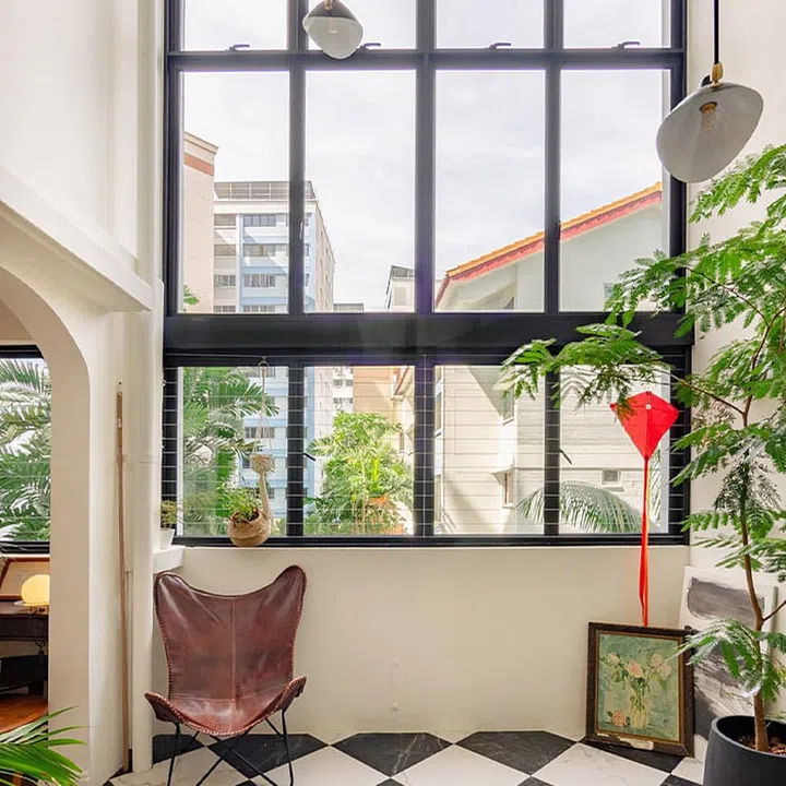 Immediately following the living room, on the same floor, is the sunroom. “We sealed the double ceiling outdoor balcony with large windows and turned it into a sunroom,” Joan said. “In terms of maintenance, the sunroom is easier to clean. And if we wish to enjoy the outdoor feel, all the windows can be opened.”