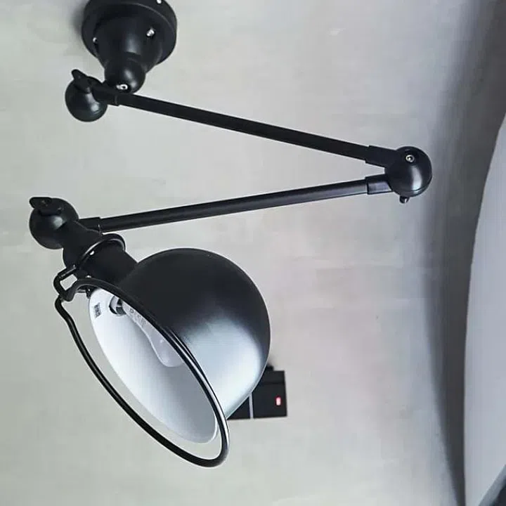 Little details, like this old-school wall lamp installed on the curved ceiling, lends a cool industrial look.