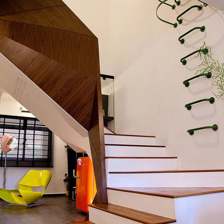Their collaboration with Kelvin was a creative triumph. Inspired by origami, their home landed the cover story of Home & Decor in May 2011, filling pages after pages with exciting interior shots of design features like a sculptural staircase, a ladder that serves as an art installation and a lego bookcase.