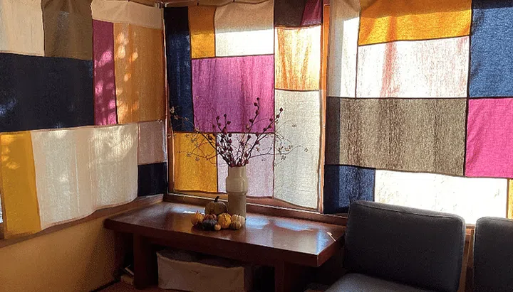 SG: “The Singapore artist and illustrator Anna Dutoit contributed a mural of boars, witches and mountains, while the curator and artist Berny Tan (also Singaporean and a friend) worked with Ashley to create the pojagi – or traditional Korean patchwork – curtains that beautifully capture Okayama’s sunlight… There is a certain beauty and joy in this improvisational aspect of the entire experience which we’ve really started to enjoy: All these people helping us to create this dream project together.”