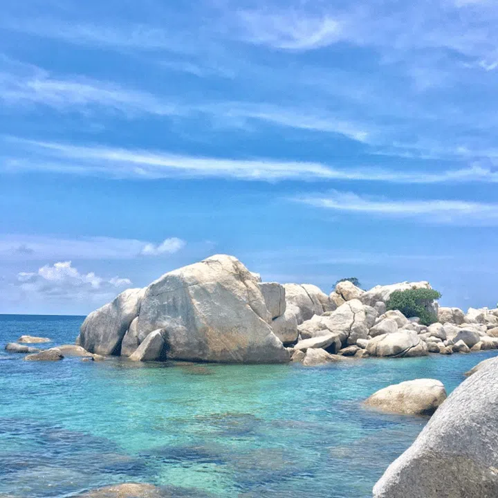 Aside from its shallow and clear waters, the white sand beach has a series of unique granite formations.