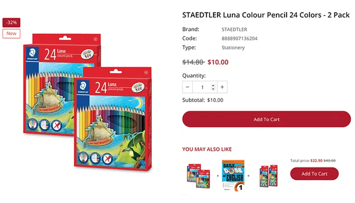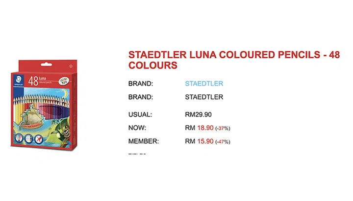Something you can consider getting are colour pencils, which cost RM18.90 (approx. S$5.35) for a pack of 48 Staedtler Luna Colour Pencils at Malaysia’s Popular, compared to S$10 for 2 packs of 24 colour pencils from the same brand in Singapore.