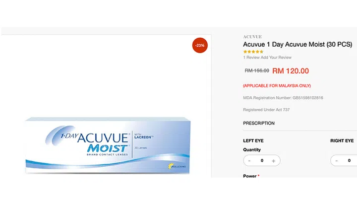 Price in Singapore: S$61 for a box of 30 daily lenses