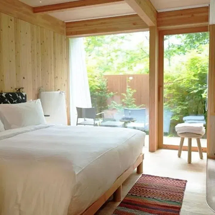 Design and architecture fans will be captivated by this unique boutique hotel in Karuizawa, a tranquil resort town about an hour by train from Tokyo (take the shinkansen from Tokyo Station to Karuizawa Station followed by a 10-minute taxi ride).