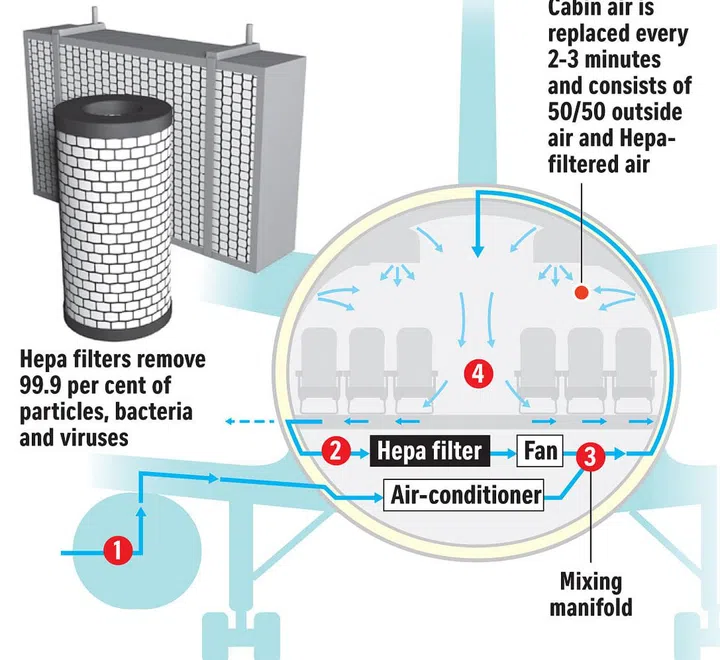 • High Efficiency Particulate Air (Hepa)filters installed on board planes that can filter 99.9 per cent of airborne microbes
