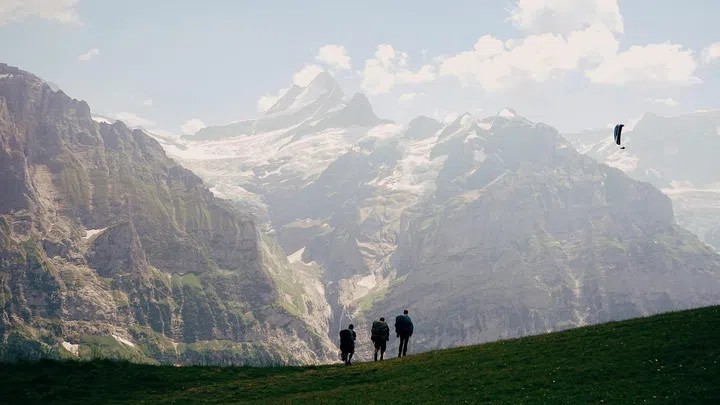 The scene featuring Kleine Schneidegg can be found at the very end of episode two and it shows the two protagonists in Switzerland watching paragliders side by side years before Yoon Se-ri crash-landed in North Korea.