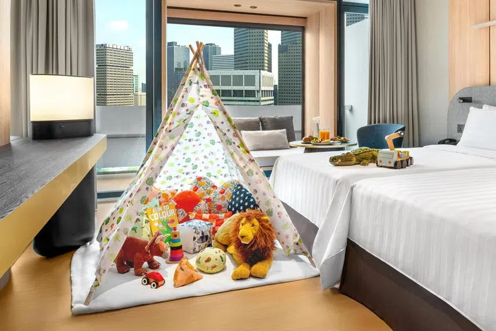 Its Family Escape package includes a complimentary connecting room for two kids under age 12, Kids' Club access, a teepee for youngsters aged five and below, and children's amenities.