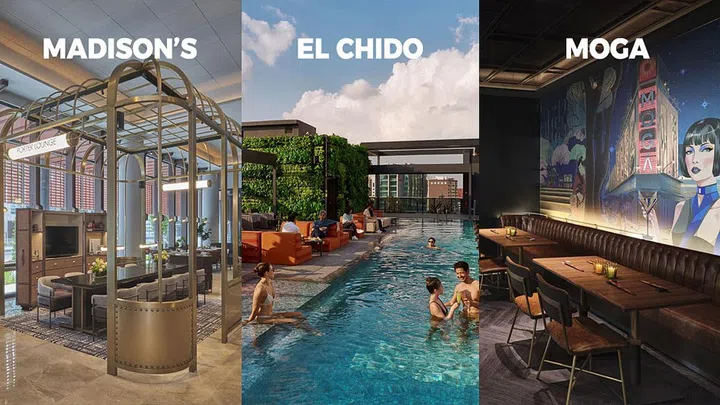 The hotel features innovative spaces, including versatile lounges designed for both work and leisure, along with two swimming pools for guests to enjoy. The first pool, situated on the third floor, offers ample space and includes cabanas for relaxation. The second pool is located at the hotel's rooftop bar, El Chido, providing guests with stunning city views while they unwind.