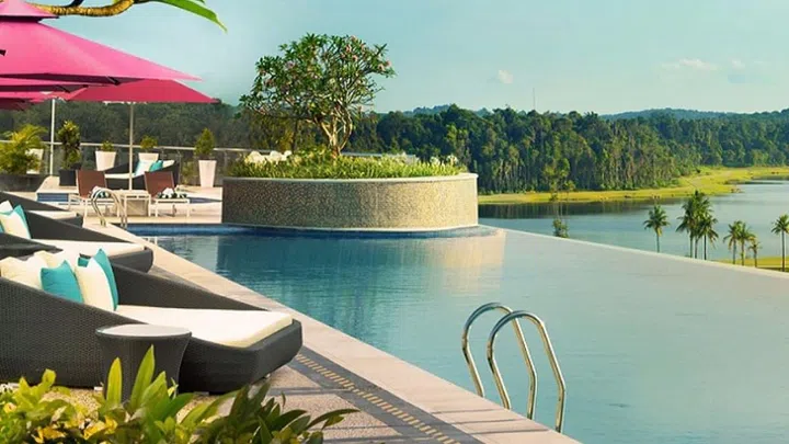 An hour away by ferry at Lagoi Bay, Grand Lagoi Village is surrounded by sweeping bay views and lush greenery. Chill out at the rooftop infinity pool, sip mocktails while watching the sunset or pamper yourself with a massage at the spa (from $150 a night).