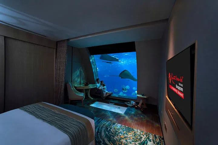 Fancy an underwater hotel room experience like those on offer in the Maldives? Then book one of Resorts World’s duplex Ocean Suites which feature an outdoor patio and jacuzzi above ground, and below, a view of over 40,000 marine creatures who call the SEA Aquarium home. The spacious rooms comfortably sleep two adults and two children and start at SGD1700+++, which includes butler service.