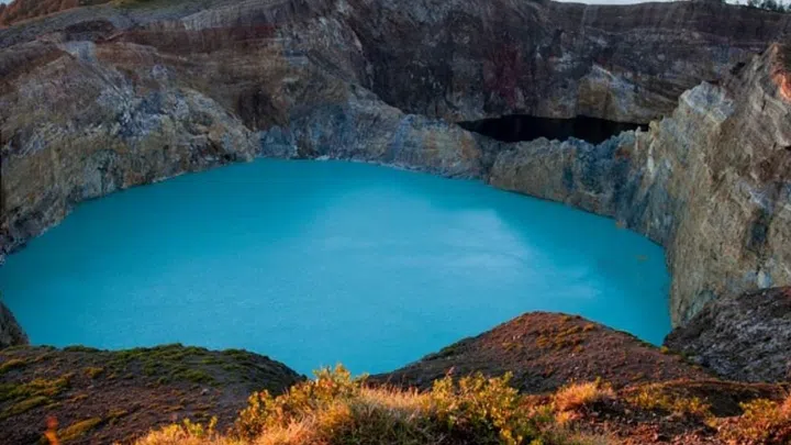 This tri-coloured lake lies within the summit of the craters of Kelimutu, a volcano in the island of Flores in Malaysia.