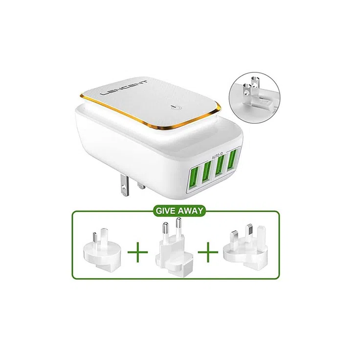 This Lencent USB Travel Charger is a must-buy for travelers. With its 4-port USB, the adaptor intelligently detects and delivers optimal charging for fast and safe charging. It also has a touch-activated night light, which is perfect for kids. With interchangeable UK, USA, EU and AUS plugs for international voltage compatibility, charging multiple devices anywhere in the world is easy.
