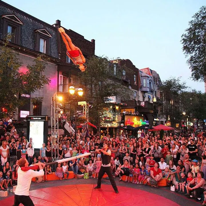 Circus on a street in Montreal, home of the famous Cirque du Soleil.
