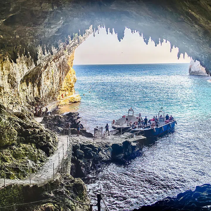 Limestone cliffs of Polignano a Mare, a seaside town 30km from Bari, Puglia's capital.