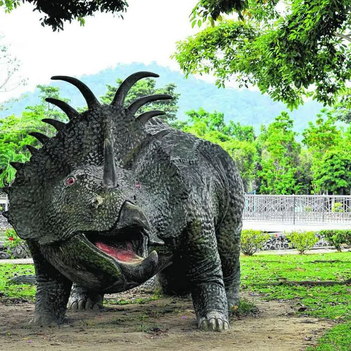 A dinosaur statue at Tasik Y park in Jalan Sejati, 83000 Batu Pahat on July 26.