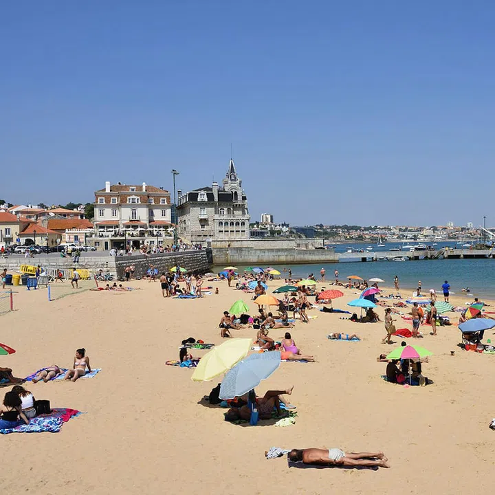Sunbathers at the Praia da Rainha, one of many beaches in the seaside town of Cascai.