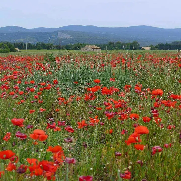 Fields of wild poppies are among the sights that greet visitors to Provence, a land of delicacy and ruggedness.