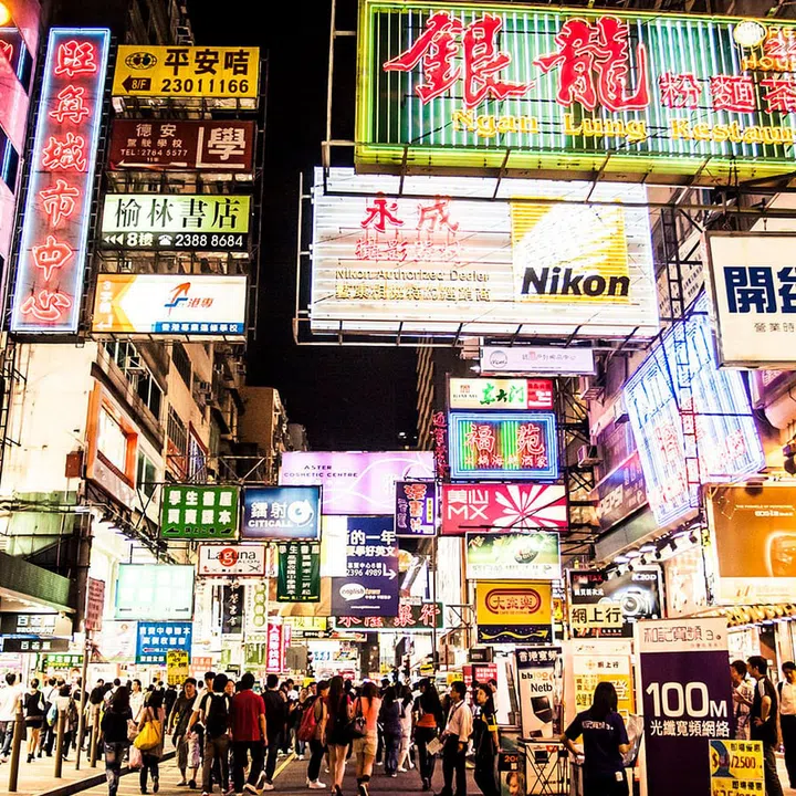 People walk at a market place at the shopping Mongkok district in Hong Kong.