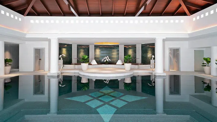 Chiva-Som, located on the beachfront of Hua Hin, Bangkok, boasts facilities such as this indoor recreational swimming pavilion that offers a serene environment