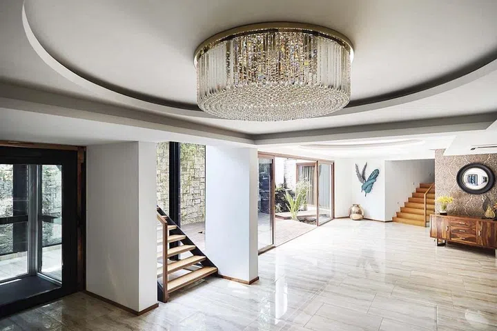 Artificial lighting plays a crucial role in creating a comfortable indoor space after sundown. Soft, evenly distributed indirect lighting that mimics natural light works wonders, so why not take it up a notch by installing them in curved niches? This curvy lighting niche by Loft Concept adds a welcome accent to the linear lines in the room while highlighting the majestic chandelier.