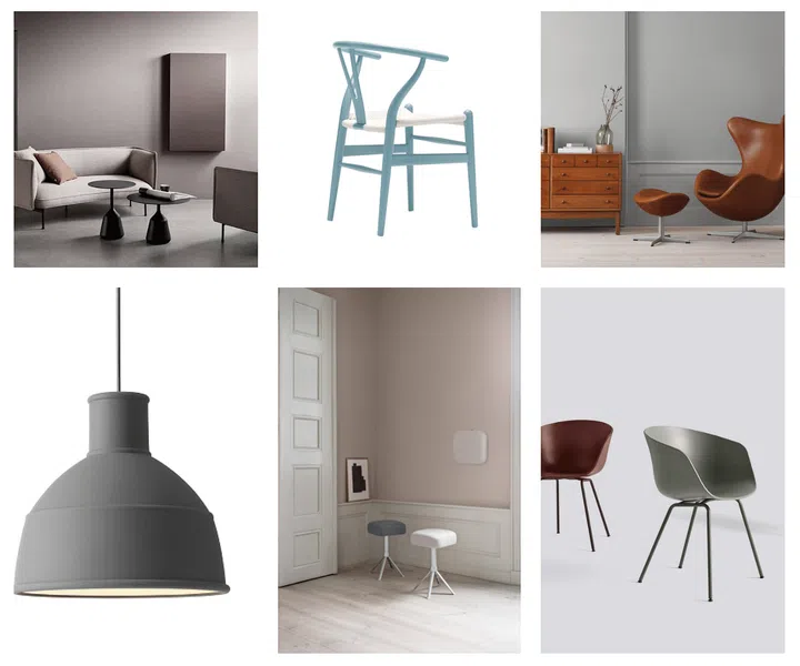 BoConcept, Bolia, Carl Hansen & Son, Fritz Hansen, Hay, Louis Poulsen, Montana, Normann Copenhagen, Muuto.
