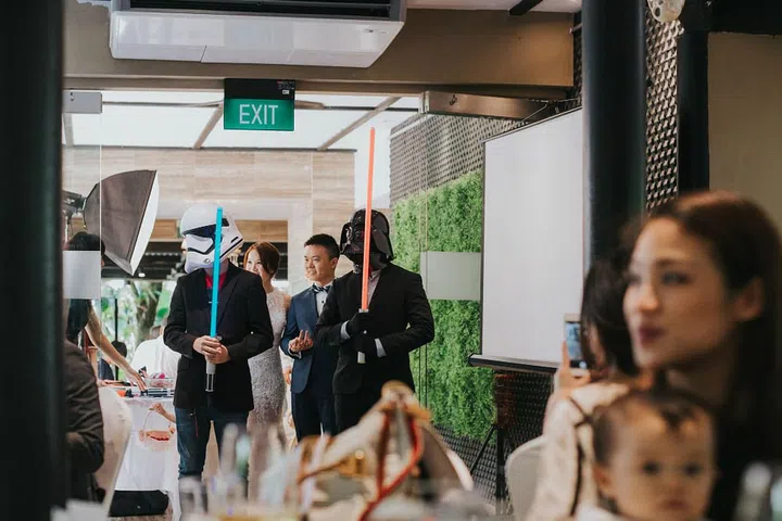 Or enlist the help of your family and friends - like how Wei Ying & Alvin did for their Star Wars themed wedding with their entourage who showed up dressed in costumes and light sabres.