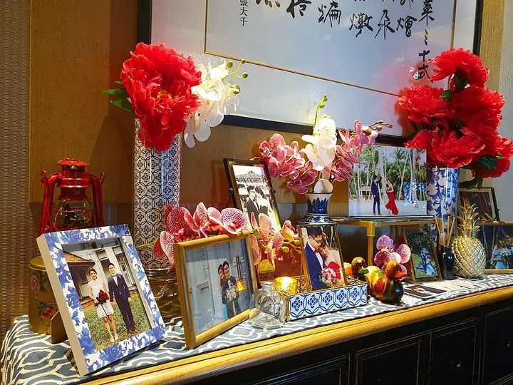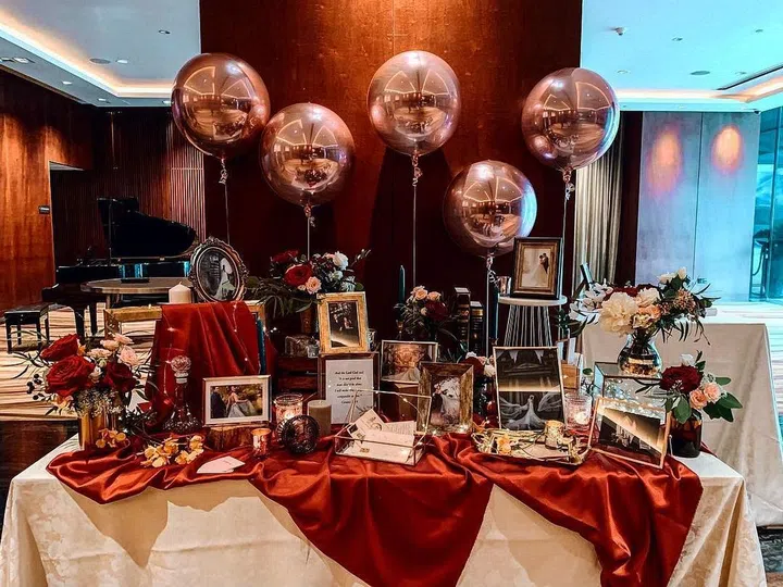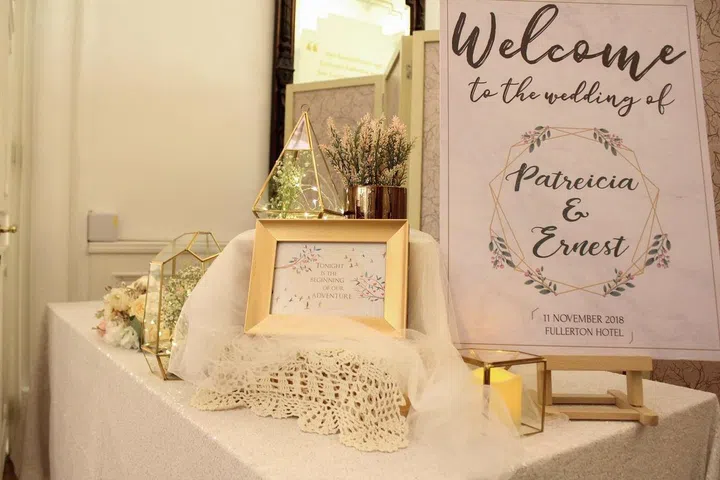 Prices: Solemnisation package starts from $500, reception table styling and premium photo gallery are $288 nett, backdrop styling starts from $220 and wedding arch styling is at $320 nett.