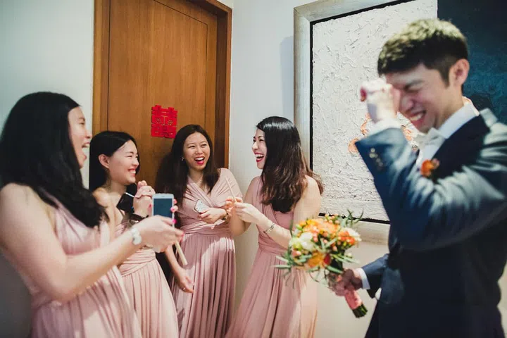 These days, couples usually prepare a standard $88-$288 for each person… Unless the bridesmaids manage to get their way during the games section and weasel more "angbao" out of the groom's party.