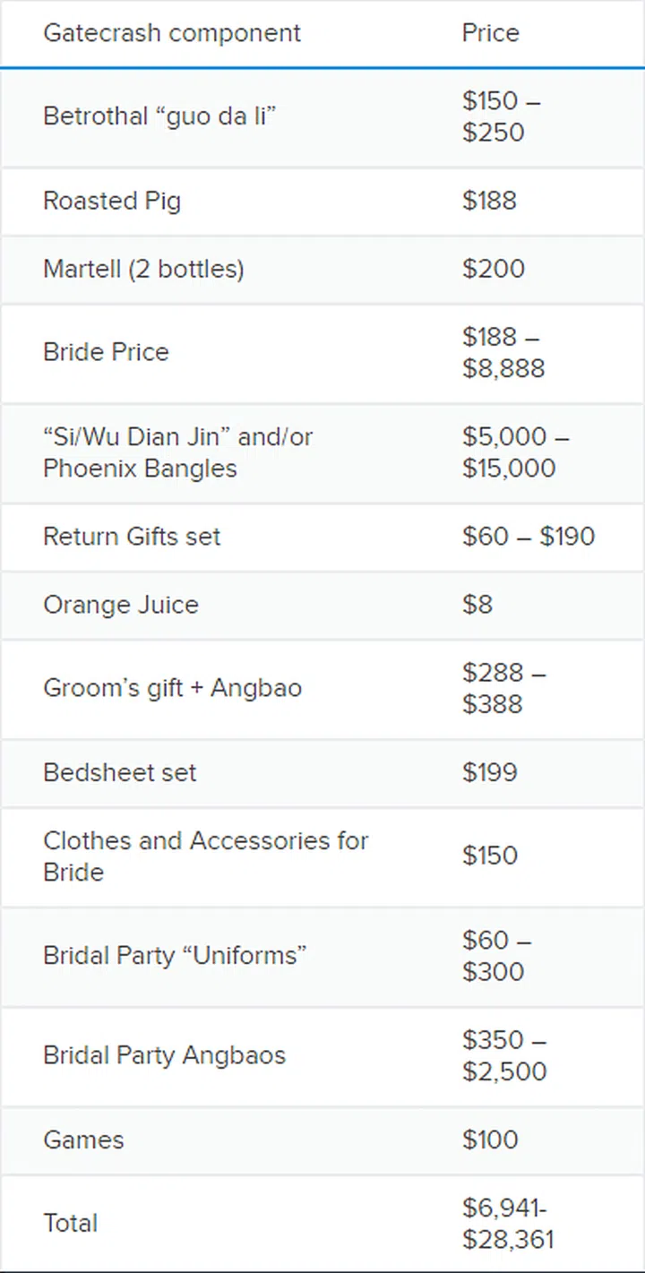 But nope, apart from the perfect world I've formed in my dreams every night, everything costs money. In fact, did you know some traditions cost money too? Most Chinese couples tend to underestimate the costs involved in a gatecrash.