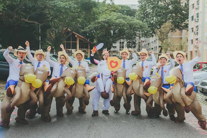 When you see couples with so many bridesmaids and brothers, you'd think "Wah! Very shiok hor. So many people help them with their wedding."