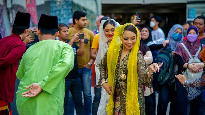 Guests traditionally don the Malay traditional wear - Baju Kurung or Kebaya. The two-piece Baju Kurung is modest (typically loose-fitting) yet very feminine, so it has become a staple in a Malay woman’s wardrobe.