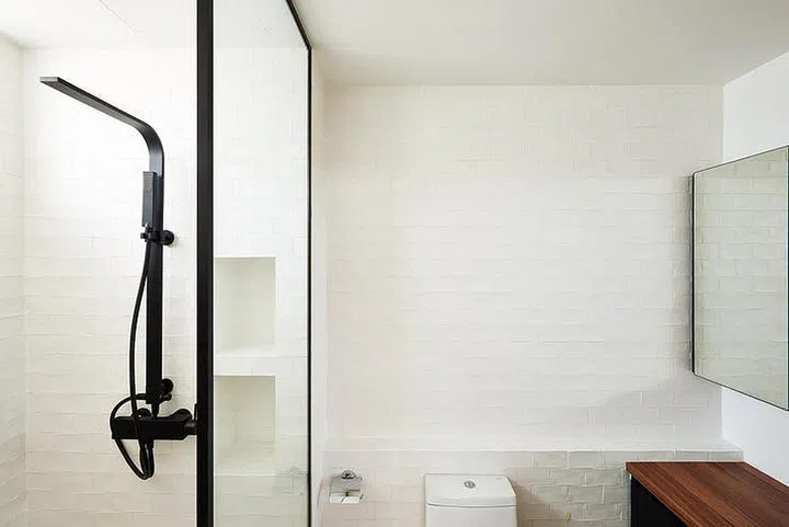 Sometimes, all you need is one focal design statement – this matte black shower mixer contrasts boldly against its plain white backdrop, turning the bathroom into a chic, urban space.