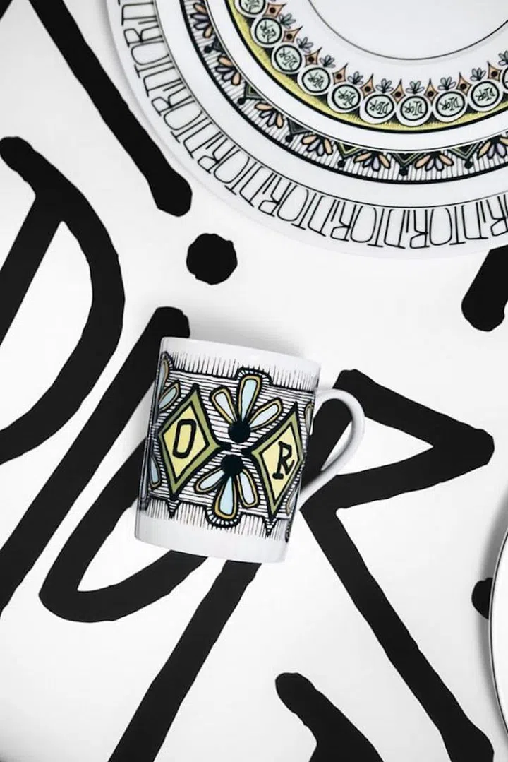 Besides clothing and accessories, the collaboration also produced a new tableware collection, which was launched as part of Dior Maison, the brand’s home decor arm. Shawn Stussy’s iconic graffiti design can be seen on dinner plates and mugs, lending an interesting edgy element to the luxury that Dior embodies.
