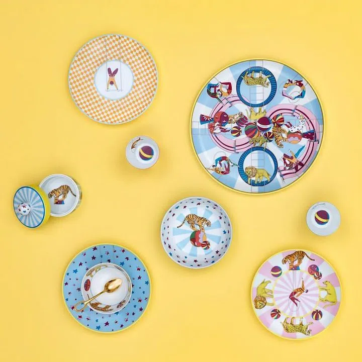 As the name suggests, the Circus tableware features prints of colourful balloons and flags, acrobats and adorable animal motifs. Each design is dynamic and playful, and will definitely suit the young and young at heart while adding amusement to every meal.