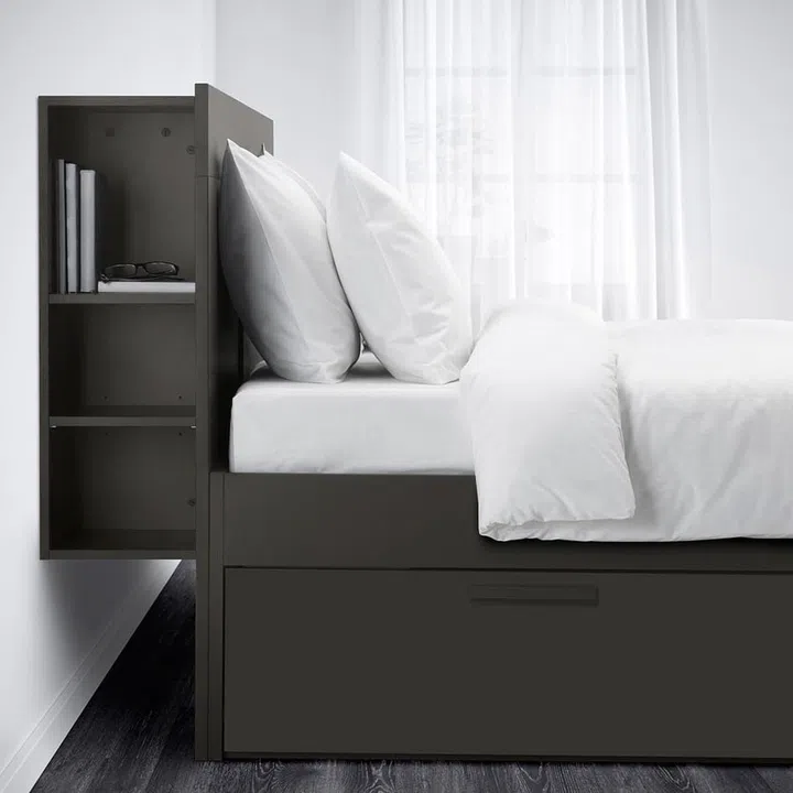 Your bed headboard can be more than a decorative element. Ask your designer to integrate some storage compartments into your headboard. This will eliminate the need for sideboards and free up the space in your bedroom. Or simply choose one of bed frames with built-in storage headboard that are available in the market.