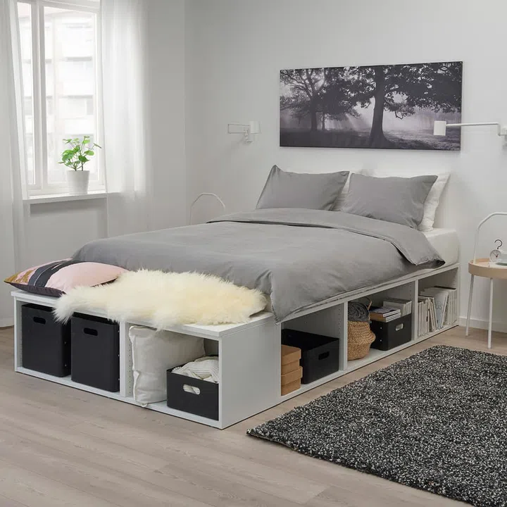 Depending on how high is your ceiling, you can bump the platform up by 15-20cm to get drawer-size storage for linens and documents, or up to 60-75cm to store bulkier items like suitcases.