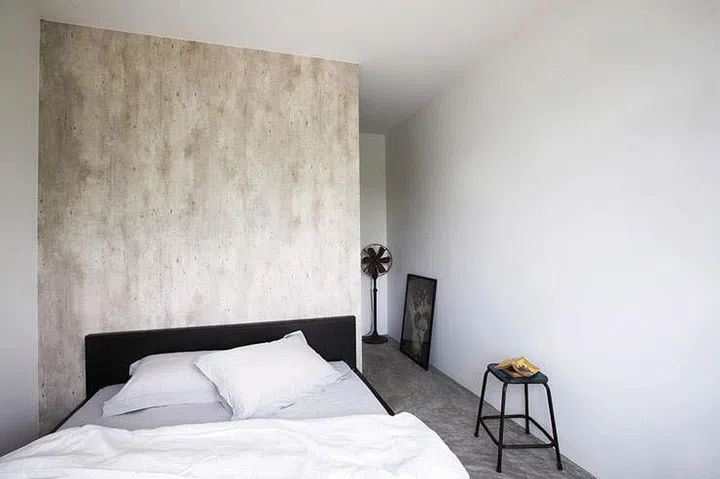 The lack of decorations may appear stark at first, but this calculated sparseness complements the bedroom’s architectural outlines to create a modern expression. A simple wallpaper may sometimes make a bigger impact than decorative items, anyway.