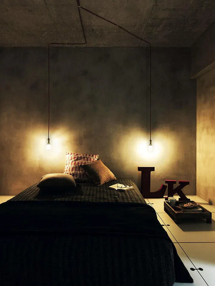 Keep your concrete walls bare and the lighting minimal to create this elegantly moody den.