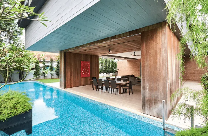 The family members of this Good Class Bungalow favoured a home that felt livable and had a relaxed atmosphere. Nestled within the Caldecott Hill estate, it is home to three generations of the Ong family, and boasts Balinese elements elevated with a more modern resort look.