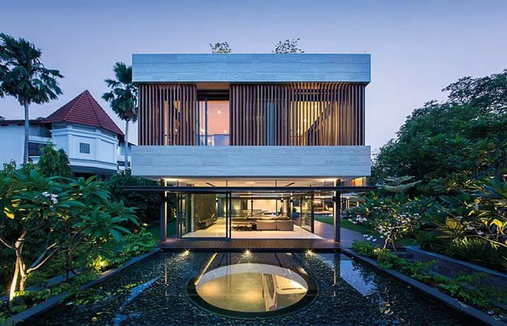 Aptly named the “Secret Garden House”, this home in the Good Class Bungalow area of Bukit Timah is characterised by striking contemporary geometry, natural materials and an abundance of lush greenery. Dreamt up by Wallflower Architecture + Design, it was designed to achieve the feel of a peaceful, secluded resort after its full potential had been harnessed.