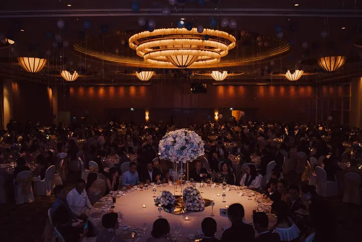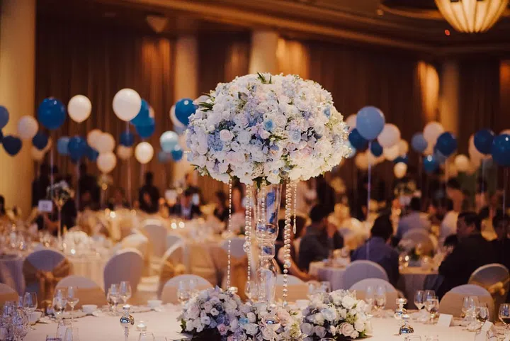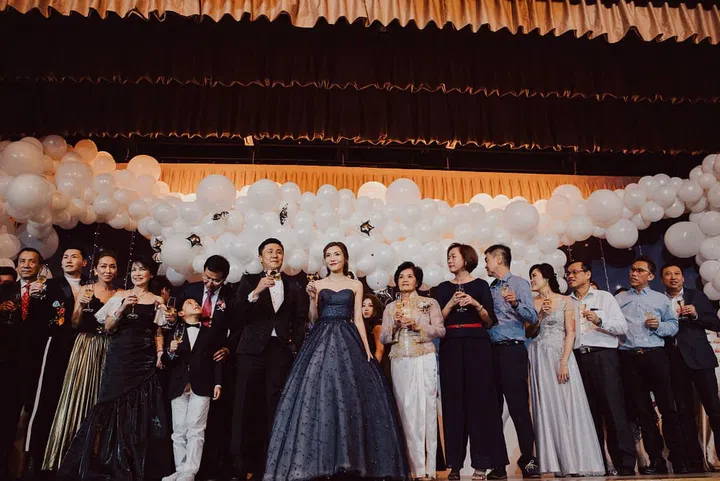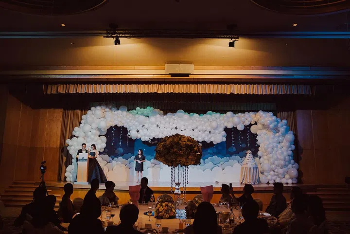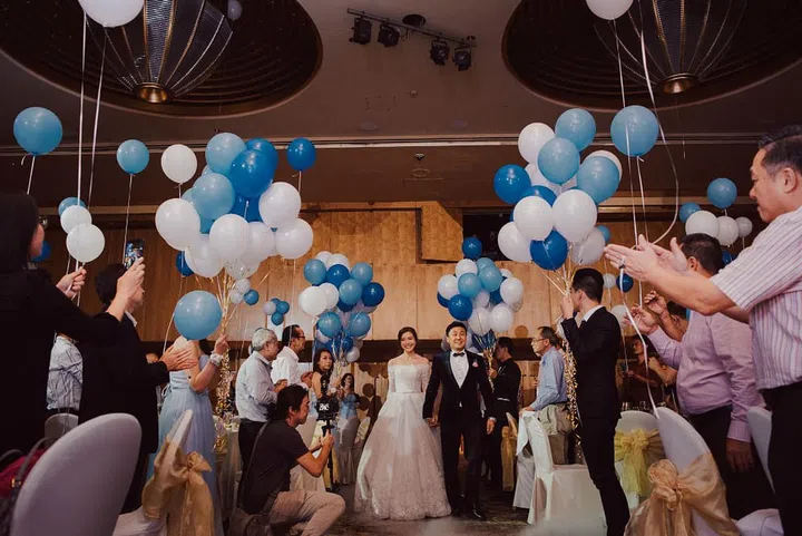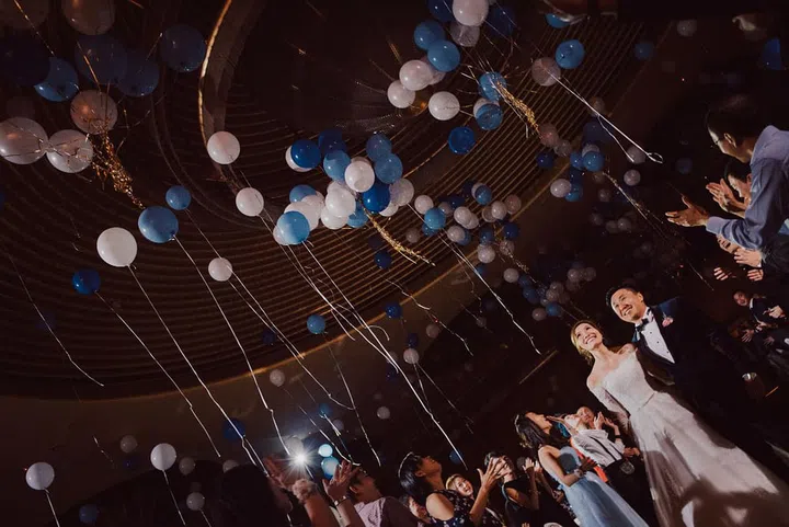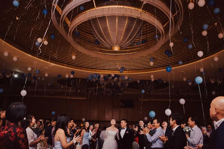 Hundreds of balloons! A sky-themed ballroom wedding at The Ritz-Carlton Millenia Singapore