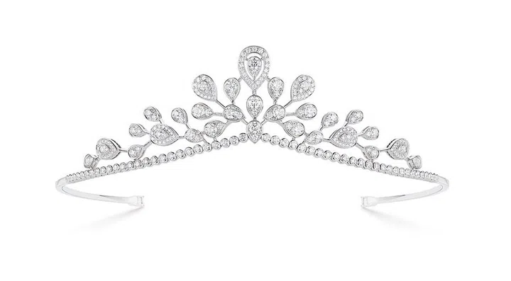 The bride's tiara was this 18K white gold diamond Joséphine Aigrette Impériale diadem from Chaumet.