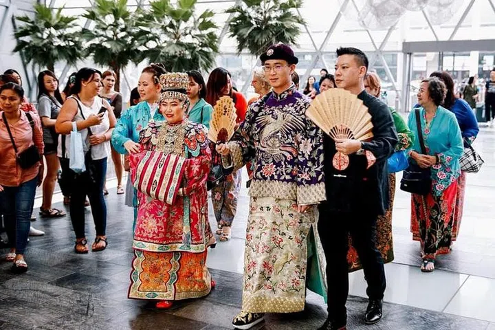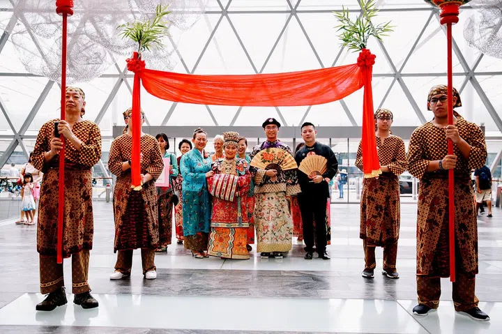 This couple showcased their Peranakan heritage with a wedding procession at Jewel Changi Airport