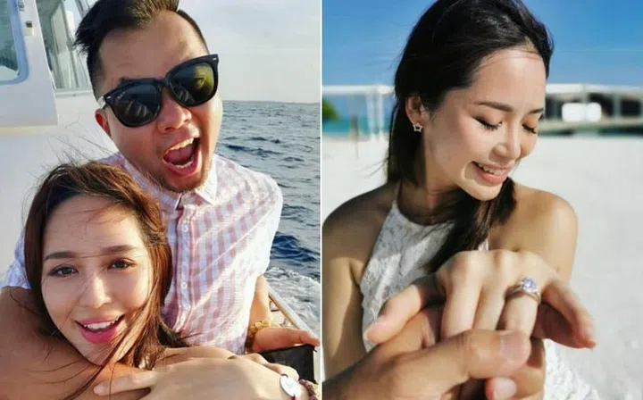 Former radio DJ Daniel Ong successfully proposed to his artist girlfriend Fay Tan while on holiday in Maldives.