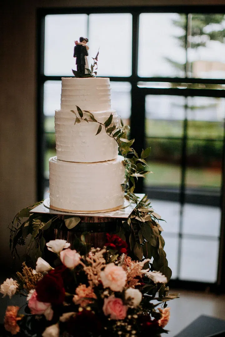 Being a florist, I had a specific floral direction in mind. I went with my favourite colours of blush, maroon and navy. Elisha assisted in conditioning the florals the day before, while I focused on creating the bouquets and table centrepieces.