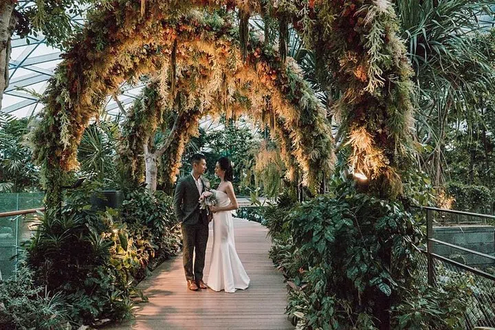 Here, you can pledge your love underneath a three-metre-high flower arch located near the Topiary Walk. Meanwhile, guests can enjoy light bites at the plush Jewel suite (Level 4), which can also double as a space for a tea ceremony before the solemnisation ceremony.