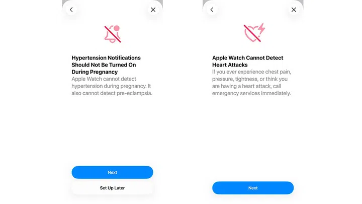 Another thing to note about the feature is that you can’t use it to detect hypertension during pregnancy and pre-eclampsia. On top of that, if you start to experience symptoms like chest pain, pressure, tightness, or think you have a heart attack, it’s important to note that this feature cannot detect heart attacks, and you’ll have to seek immediate medical attention.