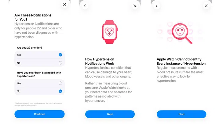 The new hypertension feature was actually designed and curated based on the data from more than 100,000 participants across multiple studies and clinically validated with over 2,000 people. But it’s also important to note that the Apple Watch does not detect all signs of hypertension, so it’s still recommended to visit your doctor to get your blood pressure checked regularly.