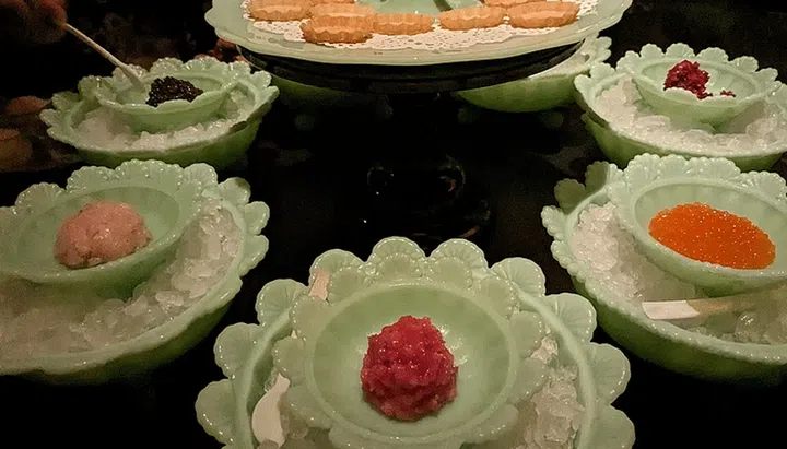 The meal opens with a celestially named appetiser, Legend of the Seven Jades that we half-anticipated Michelle Yeoh to manifest in the private dining room, where Kim hosted us.