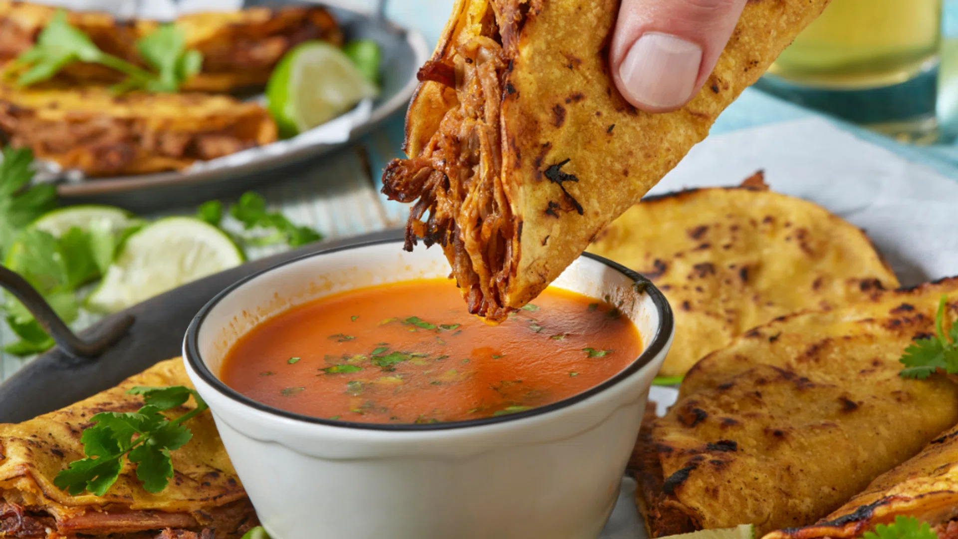 For the uninitiated (though we doubt you haven’t heard of them), birria is a savoury meat stew made with a melange of spices. When the slow-cooked meat that’s been braised in this broth is shredded and added to a toasted tortilla with cheese and other accoutrements, you get delicious birria tacos.